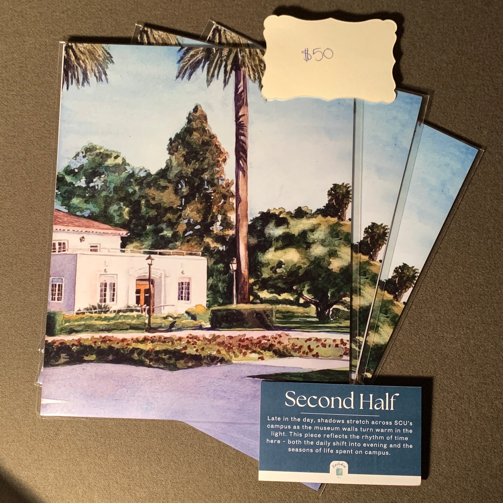 Late in the day, shadows stretch across SCU’s campus as the museum walls turn warm in the light. This piece reflects the rhythm of time here - both the daily shift into evening and the seasons of life spent on campus.